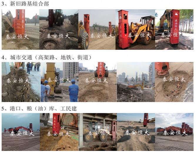 主要用于橋涵背、新舊路基結(jié)合部、高填方等公路、鐵路路基夯實(shí),堤壩及其護(hù)坡夯實(shí),建筑溝槽及回填土夯實(shí),環(huán)衛(wèi)垃圾、有害物質(zhì)填埋夯實(shí)等。用于高速公(鐵)路路基補(bǔ)強(qiáng)時(shí),可使碾壓達(dá)標(biāo)路基繼續(xù)沉降10cm以上。